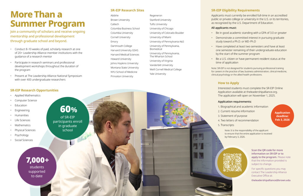 Programa de Investigación de Verano (SR – EIP): The Leadership AllianceCiencias naturales, Ciencias sociales, Ingeniería, SaludEEUU